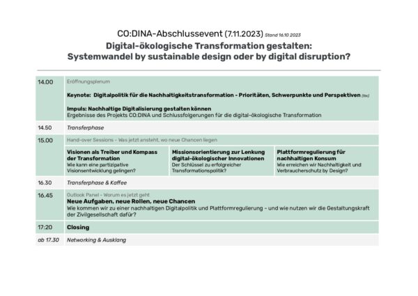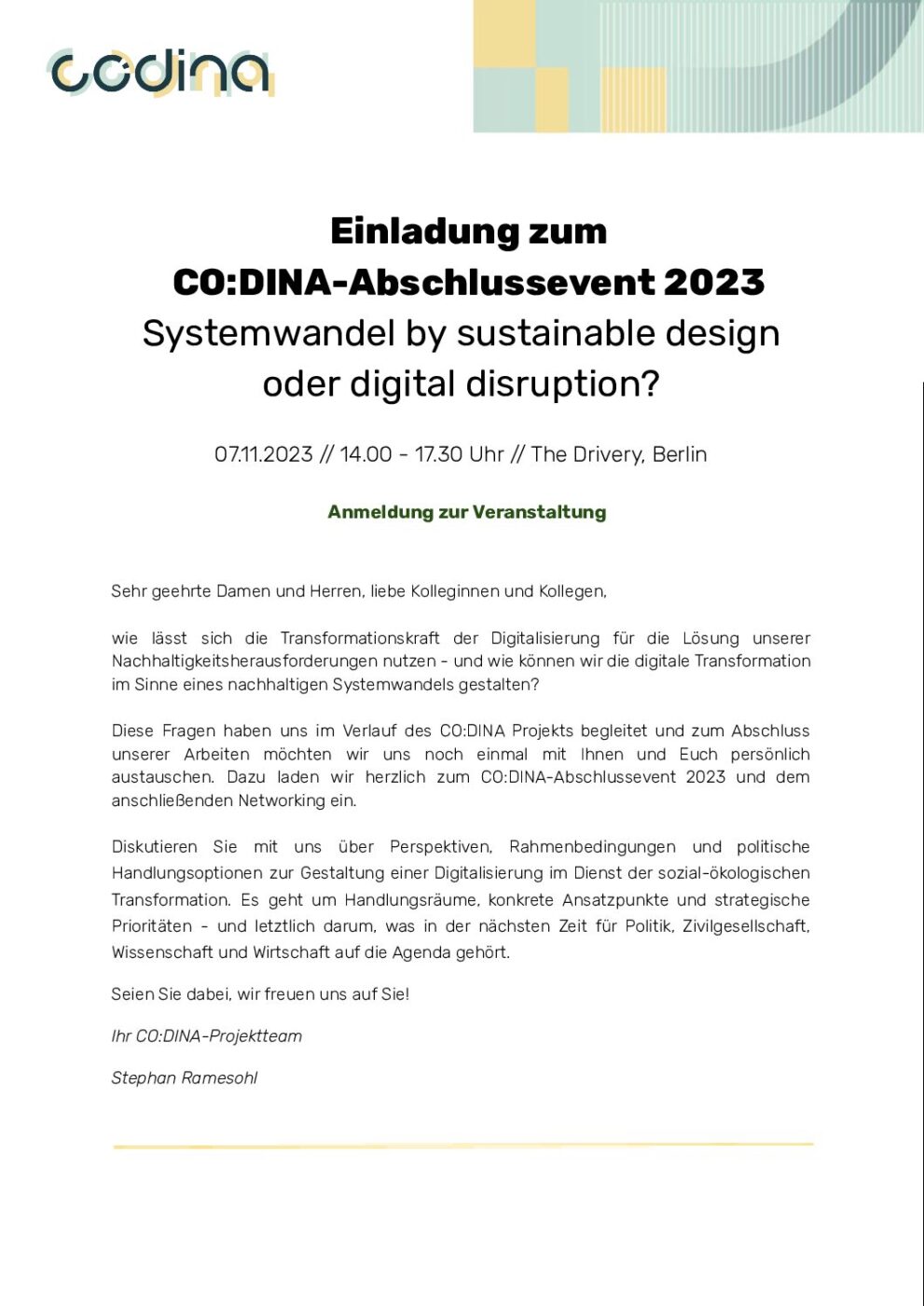 Einladung zur CO:DINA Abschlussveranstaltung am 07. Oktober 2023 24.10.2023 Weitere Infos CO:DINA Abschlussevent 2023