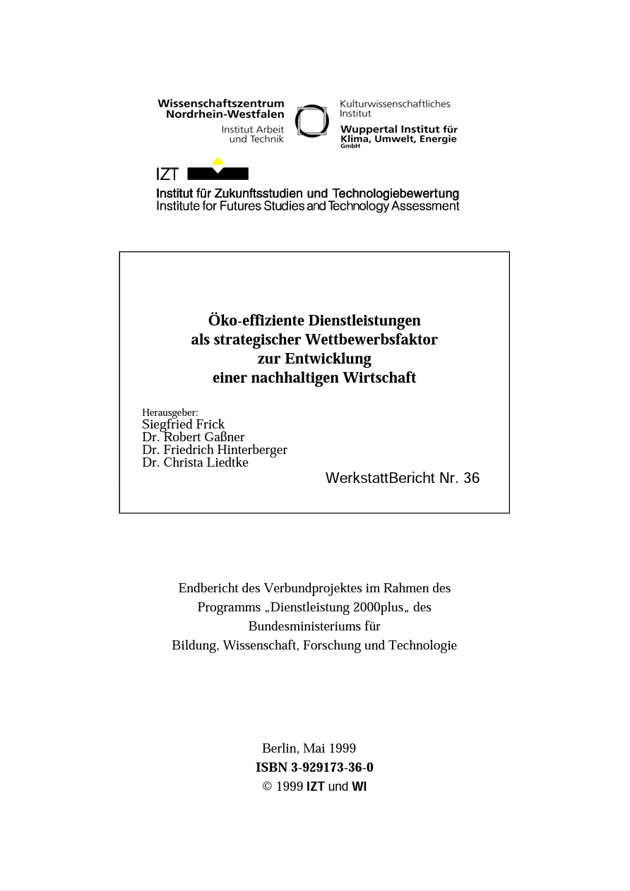 Endbericht des Verbundprojektes im Rahmen des Programms „Dienstleistung 2000plus“ des Bundesministeriums für Bildung, Wissenschaft, Forschung und Technologie