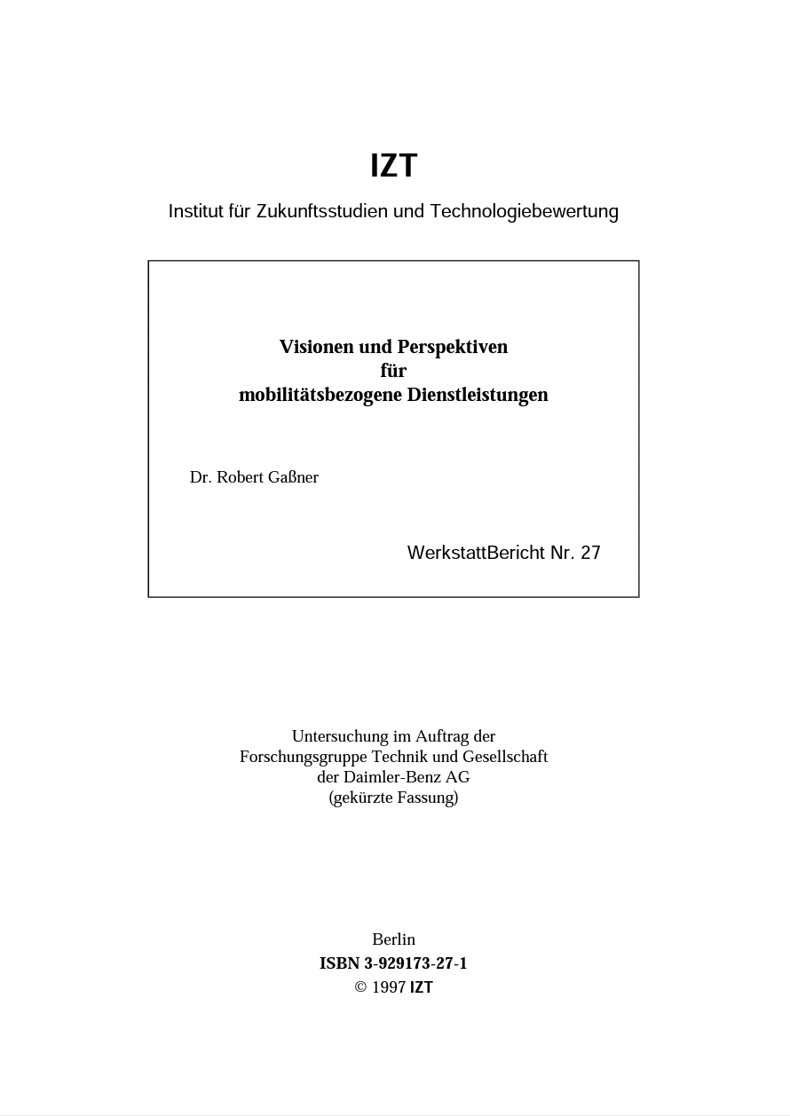Visionen und Perspektiven für mobilitätsbezogene Dienstleistungen