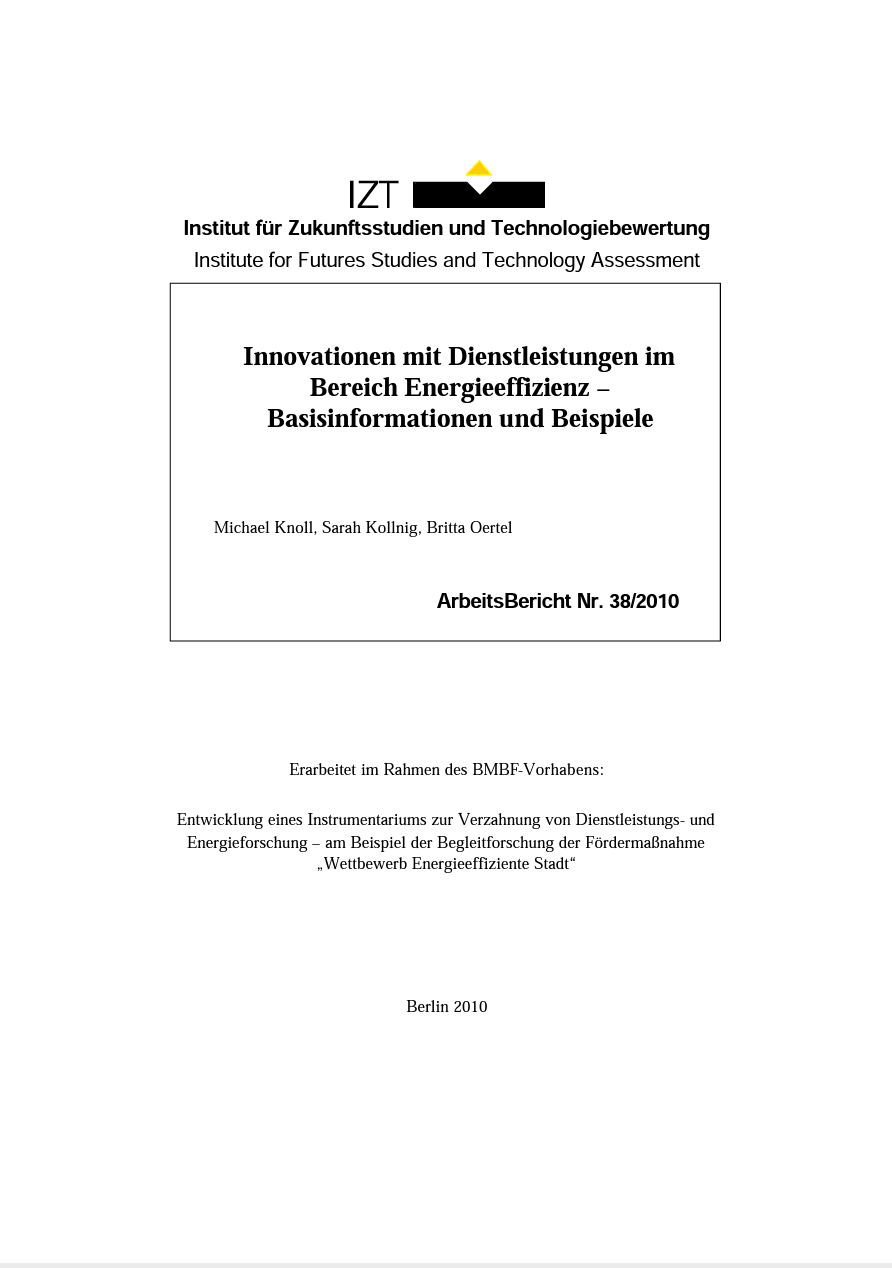 Innovationen mit Dienstleistungen im Bereich Energieeffizienz – Basisinformationen und Beispiele