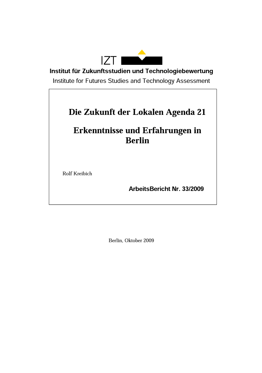 Die Zukunft der Lokalen Agenda 21. Erkenntnisse und Erfahrungen in Berlin