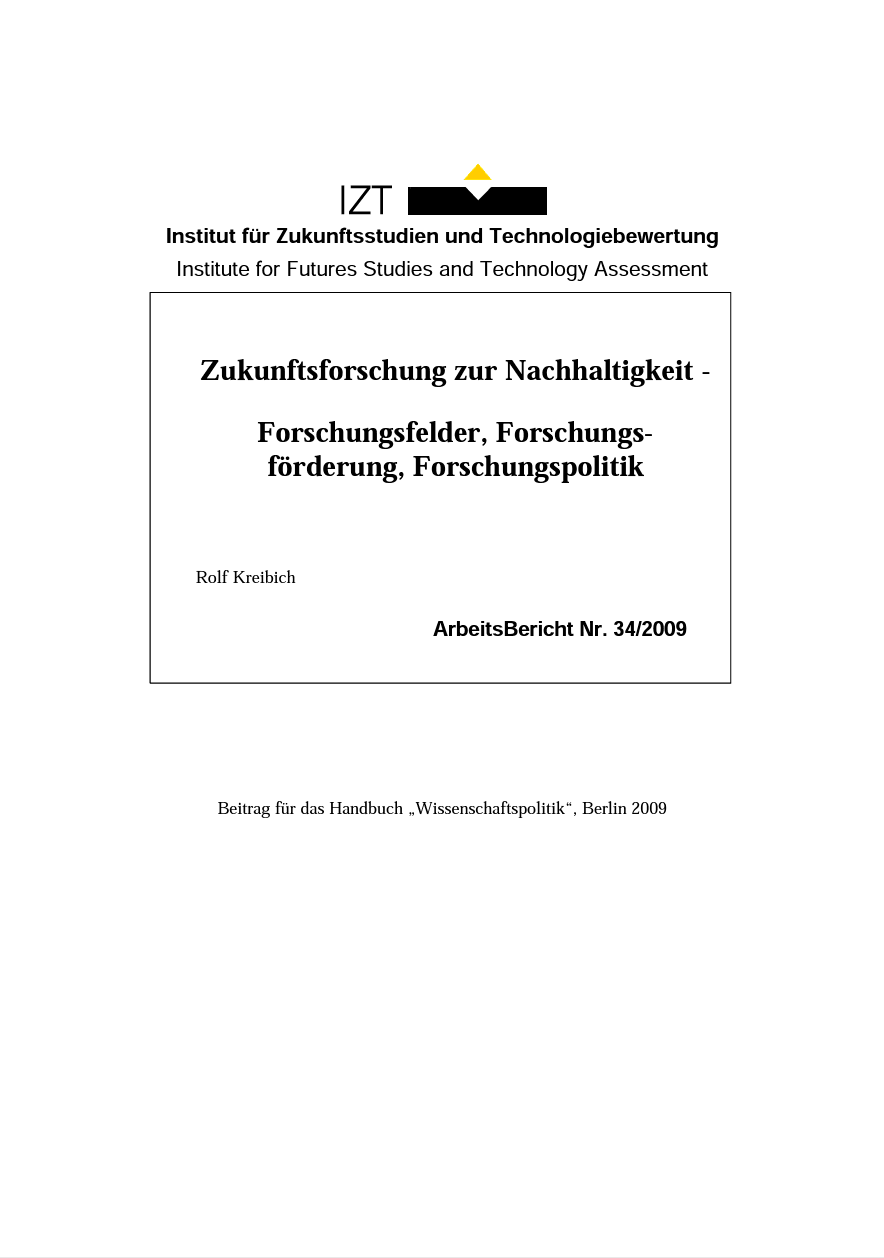 Zukunftsforschung zur Nachhaltigkeit – Forschungsfelder, Forschungsförderung, Forschungspolitik