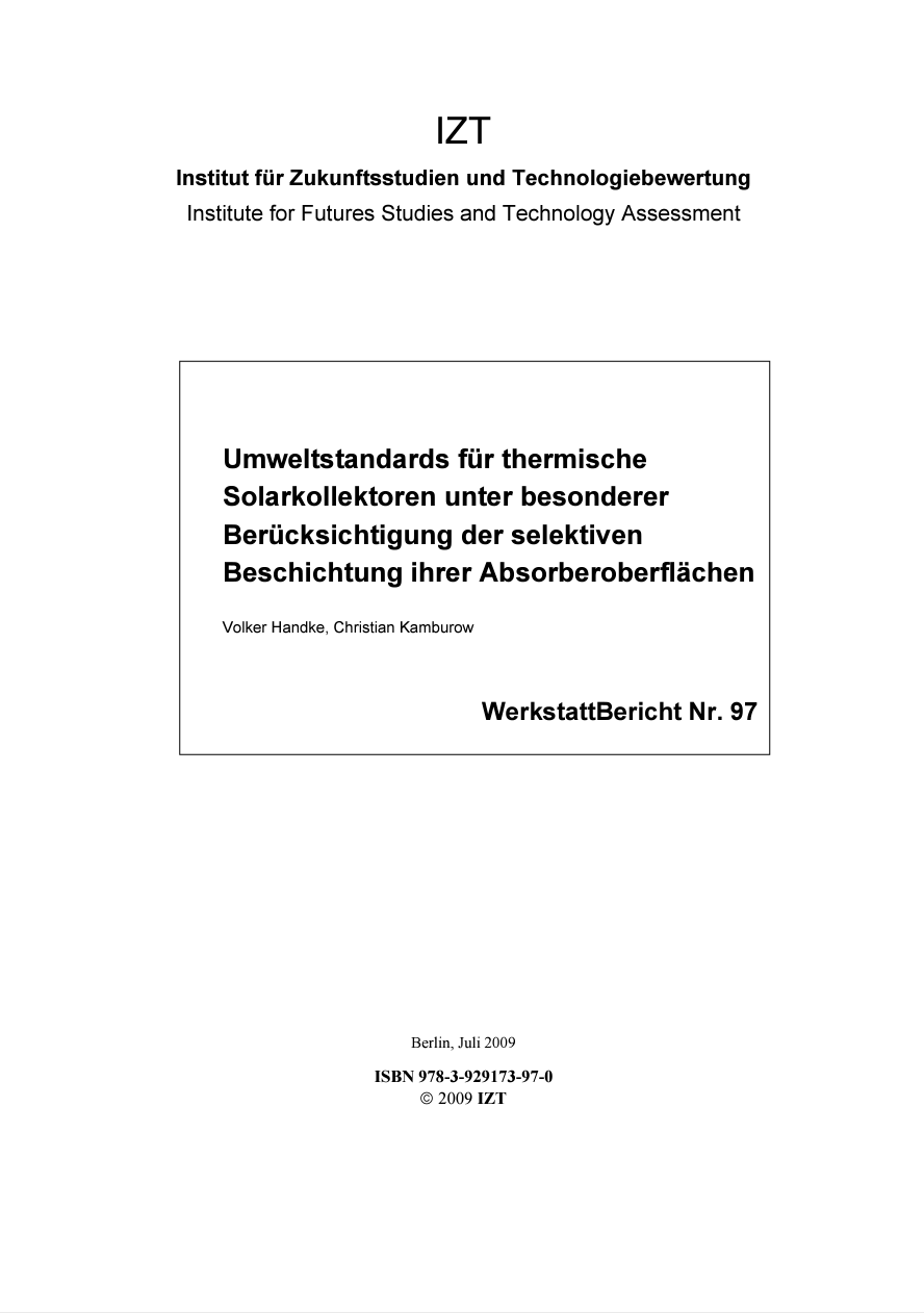 Umweltstandards für thermische Solarkollektoren unter besonderer Berücksichtigung der selektiven Beschichtung ihrer Absorberoberflächen