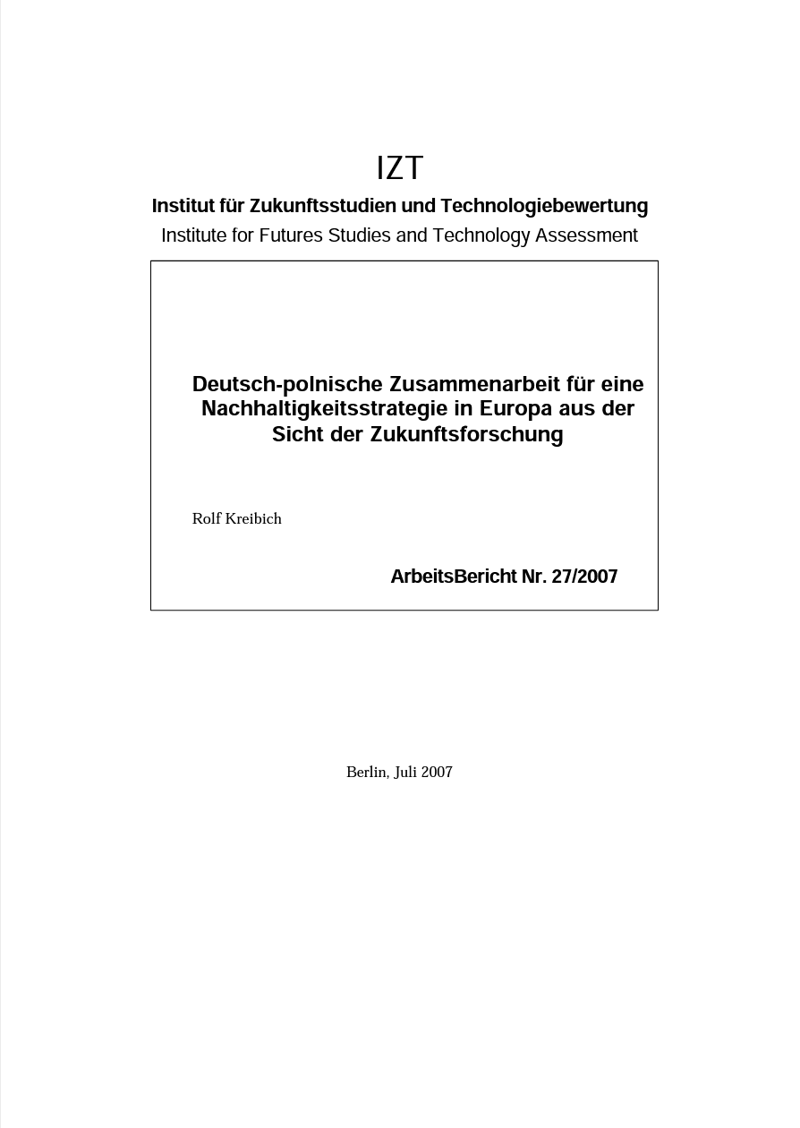 Deutsch-polnische Zusammenarbeit für eine Nachhaltigkeitsstrategie in Europa aus der Sicht der Zukunftsforschung