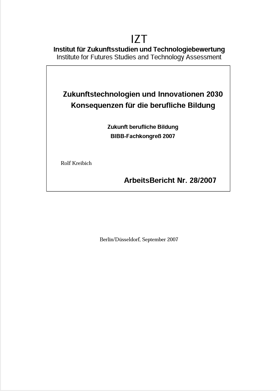 Zukunftstechnologien und Innovationen 2030. Konsequenzen für die berufliche Bildung
