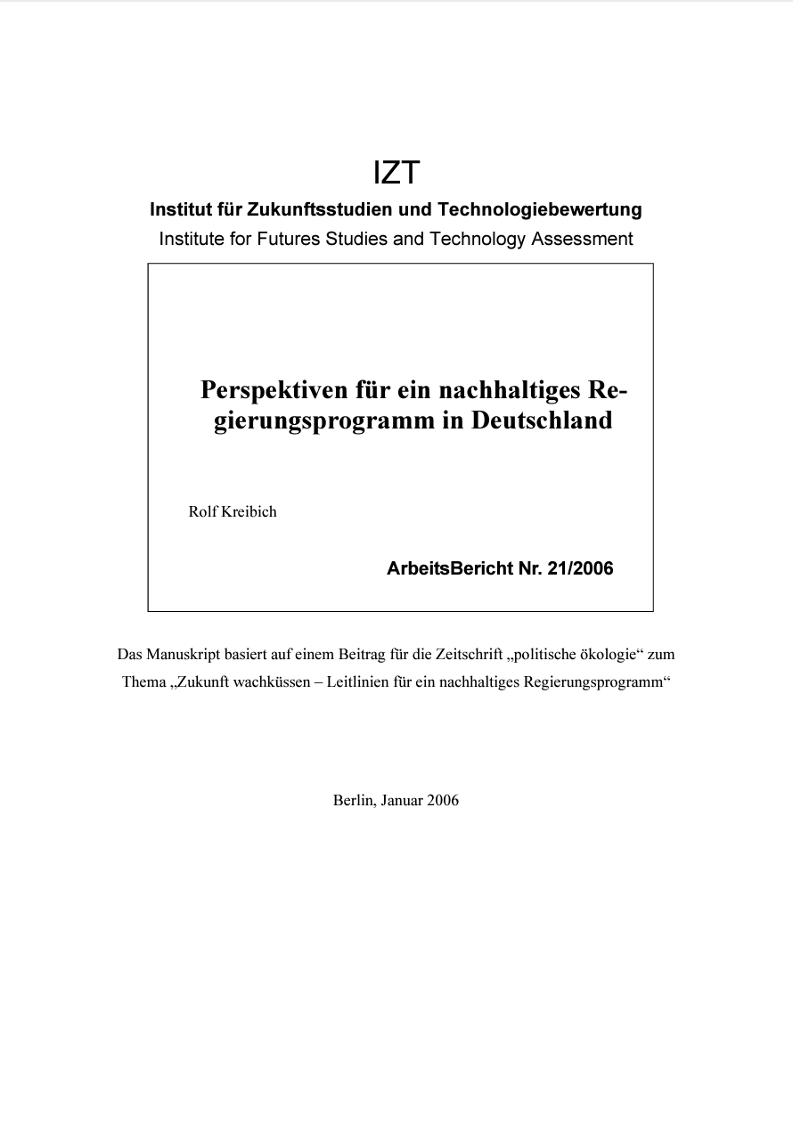 Perspektiven für ein nachhaltiges Regierungsprogramm in Deutschland