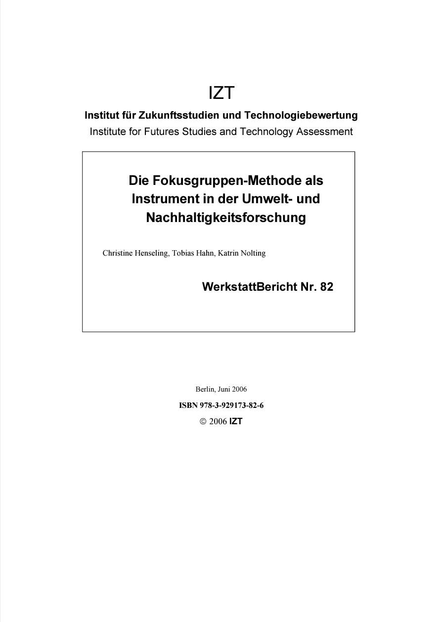 Die Fokusgruppen-Methode als Instrument in der Umwelt- und Nachhaltigkeitsforschung