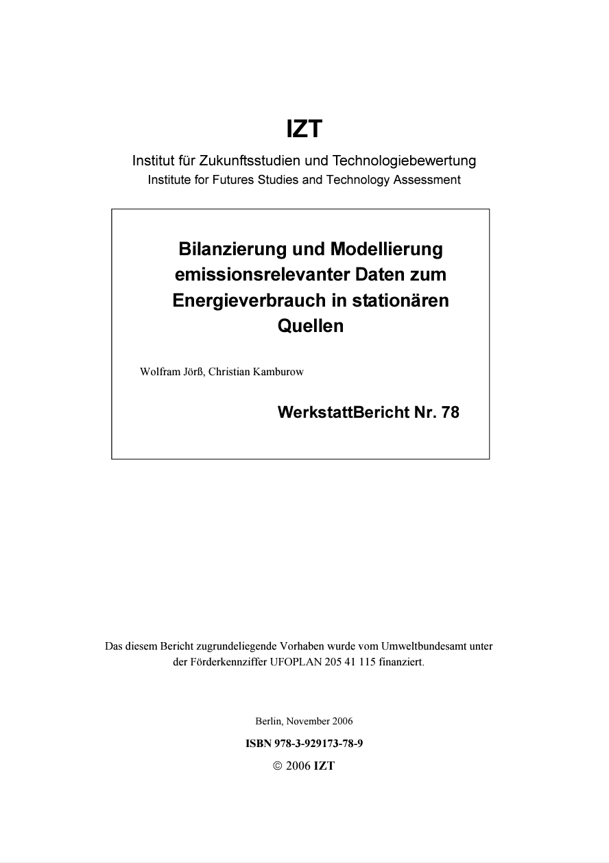 Bilanzierung und Modellierung emissionsrelevanter Daten zum Energieverbrauch in stationären Quellen