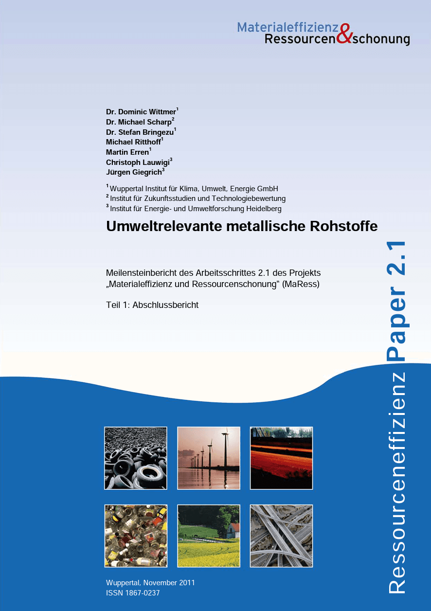 | Autor*innen | Wittmer, Dominic; Scharp, Michael; Bringezu, Stefan; Ritthoff, Michael; Erren, Martin; Lauwigi, Christoph; Giegrich, Jürgen |