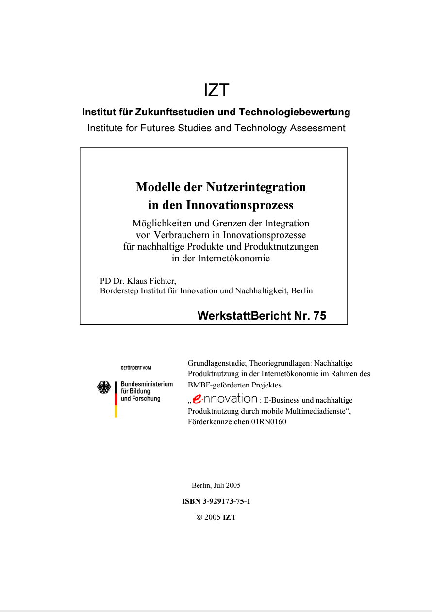 Möglichkeiten und Grenzen der Integration von Verbrauchern in Innovationsprozesse für nachhaltige Produkte und Produktnutzungen in der Internetökonomie