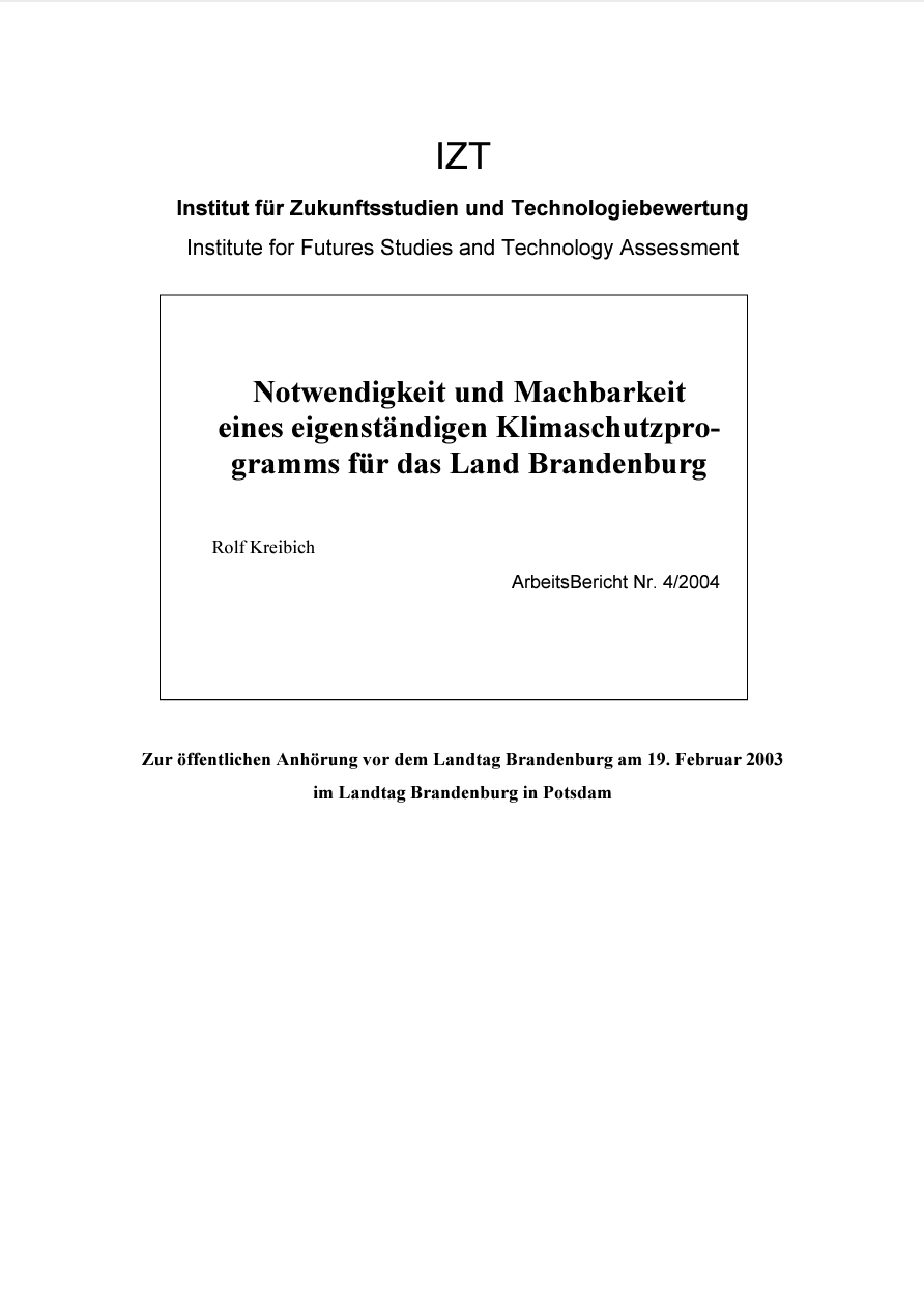 Notwendigkeit und Machbarkeit eines eigenständigen Klimaschutzprogramms für das Land Brandenburg