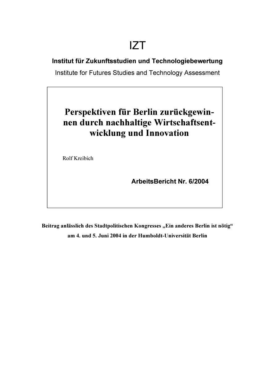 Perspektiven für Berlin zurückgewinnen durch nachhaltige Wirtschaftsentwicklung und Innovation