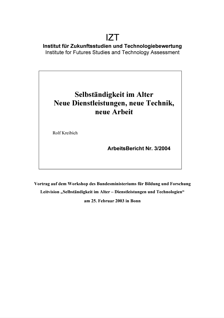 Selbständigkeit im Alter. Neue Dienstleistungen, neue Technik, neue Arbeit