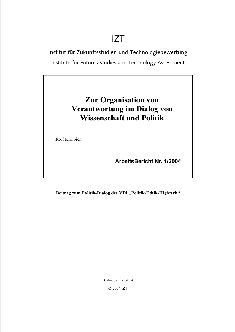 Zur Organisation von Verantwortung im Dialog von Wissenschaft und Politik