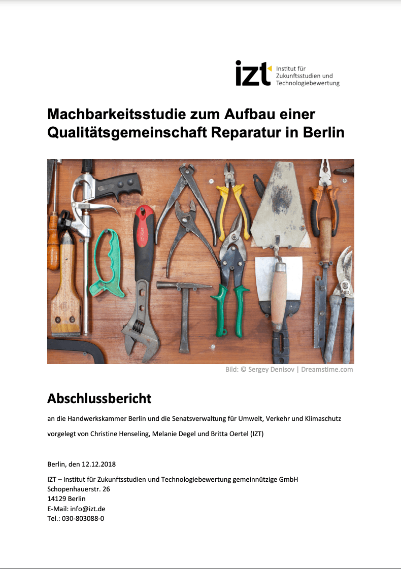 Machbarkeitsstudie zum Aufbau einer Qualitätsgemeinschaft Reparatur in Berlin