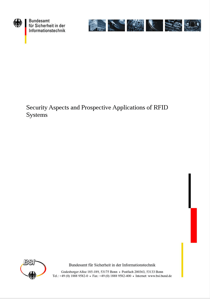 The present study was prepared for, and in cooperation with, the Federal Office for Information Security (BSI) in an interdisciplinary collaborative arrangement between IZT — Institute for Futures Studies and Technology Assessment and the Swiss Federal Laboratories for Materials Testing and Research (EMPA). Over recent years the realization has caught hold that evaluating technical developments should be done prospectively and in a problem-oriented fashion, in order to gain indications about future technology design. This can be accomplished through interdisciplinary assessment of the opportunities and risks of using RFID, focussing on the areas of IT security and data protection. Only in this way can real or perceived security problems be recognised early as central barriers to the economic use of RFID technology, and thus can perhaps be avoided as early as possible. The objective of the present study “Security Aspects and Prospective Applications of RFID Systems” is to give the interested (specialized) public an overview of the technical basics, application potentials and risks of RFID systems. The study’s main focus lies in the prospective analysis of possible threats which result from using RFID systems, including an assessment of the effectiveness of existing security measures. In addition to that, visual aids and a great number of practical examples demonstrate which RFID systems are being used today and which are being tested for the future